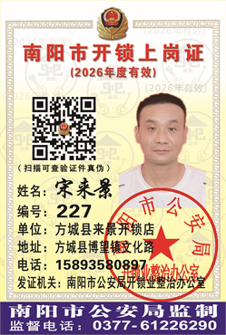 店名:方城县来景开锁店 地址:方城县博望镇文化路 电话:15893580897