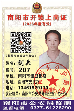 证号:207 刘兵 店名:南阳市佳卫锁店