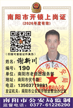 2020年荣获南阳市公安局和开锁协会颁发的“平安南阳贡献奖”、等荣誉称号匾牌。在南阳市首届(2020)锁匠开锁比武大赛中荣获冠军。本人能积极主动参加2023年南阳市公安局组织的打击犯罪活动,受到表彰和奖励。2025年被南阳市公安局和开锁协会评为“优秀锁匠”、门店被评为“信得过开锁店”。
